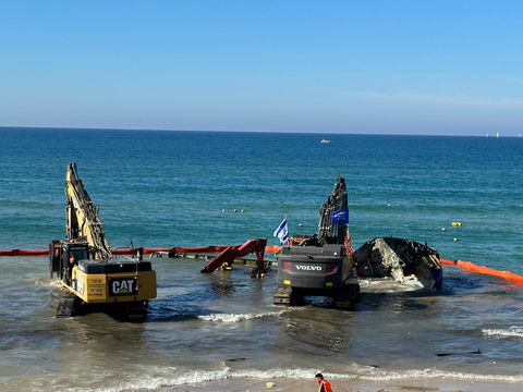 After two storms, our teams began a salvage operation to evacuate a work boat from one of the most populated beaches in Tel Aviv.